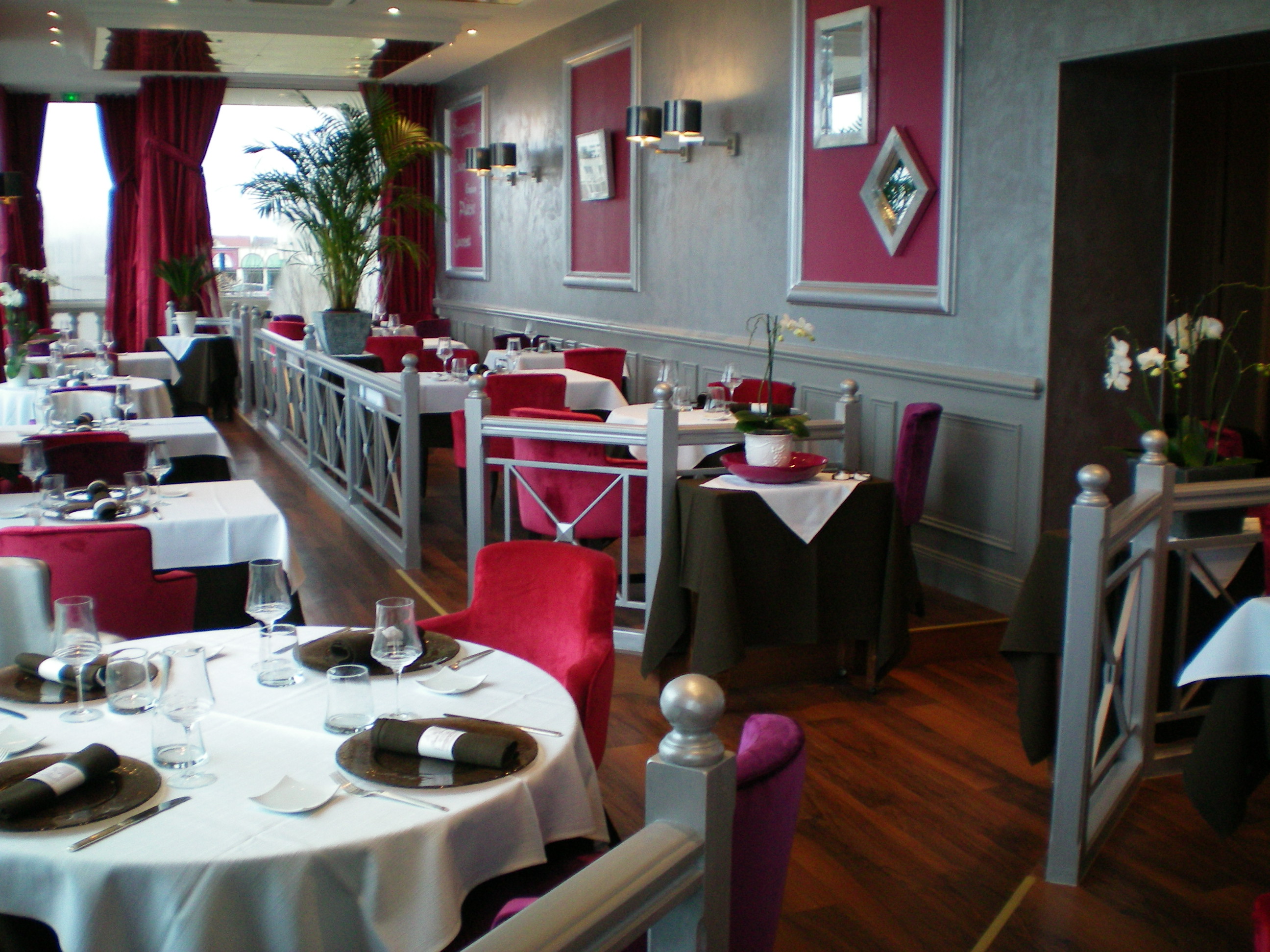 Alors voilà le but de ce nouveau commentaire, la déco !!!!! Elle était vieillotte, passée et verte.... ce n'est plus du tout le cas, comme le démontre cette superbe photo, du framboise, du rouge, de l'argent, des fauteuils super confortables (les autres l'étaient aussi d'ailleurs..) les luminaires, tout est de bon gout. La carte a également fait peau neuve. MIAMMMMMM